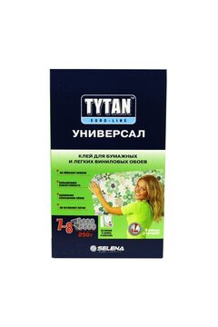 Tytan Euro-Line Универсал - рекомендуется для всех видов бумажных обоев, включая моющиеся, а также легких виниловых обоев. Клей изготовлен на основе модифицированных крахмалов немецкого производства концерна Emsland-Starke GMBH, антисептических и противогрибковых добавок. Универсальный клей для всех видов обоев, легко размешивается, крепко держит, устойчив к плесени и не желтеет. До 30 м² с одной упаковки.