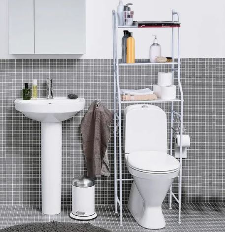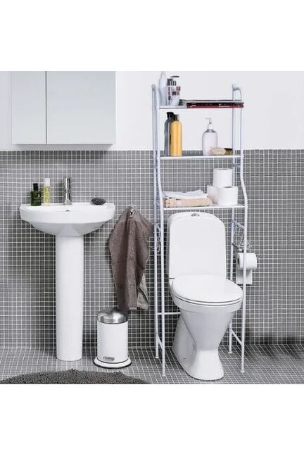 Компактный стеллаж 47×25×152 см для хранения над унитазом: 3 полки, белый цвет, экономит место, обеспечивает порядок и легкий доступ к нужным вещам.