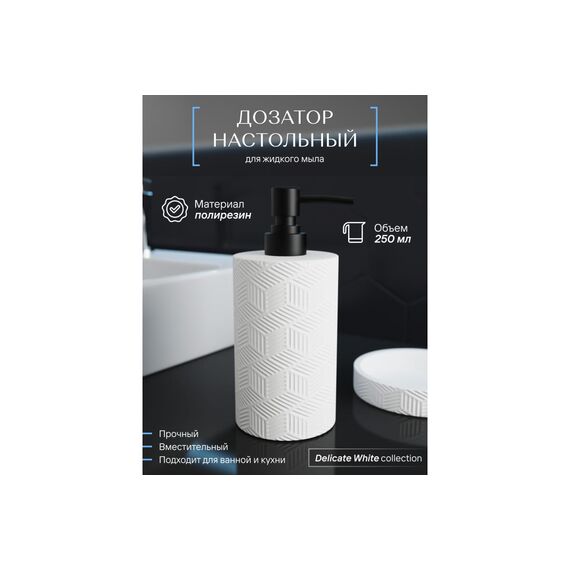 Дозатор д/жидкого мыла 250мл, полирезин, белый "Fora Delicate White" DLW021