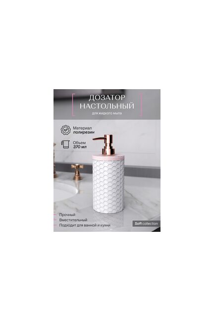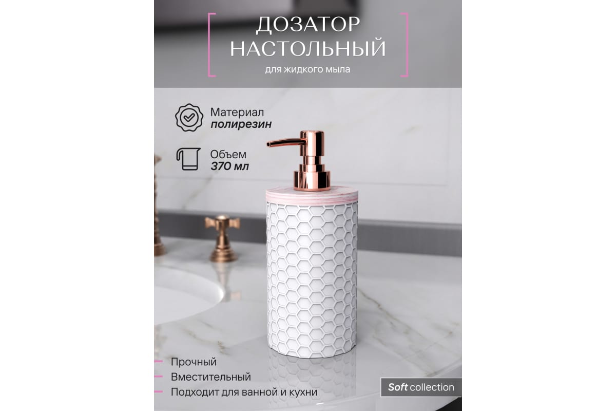 Дозатор д/жидкого мыла 370мл, полирезин, белый/розовый "Fora Soft" SFT021
