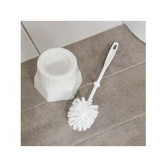 Универсальный белый ерш для унитаза с подставкой — компактный, легкий, влагоустойчивый, легко очищается и поддерживает чистоту санузла.