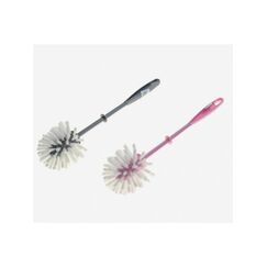 Эффективно очищает унитаз, изготовлен из прочного пластика, компактный размер, прочный ворс, подходит для частого использования.