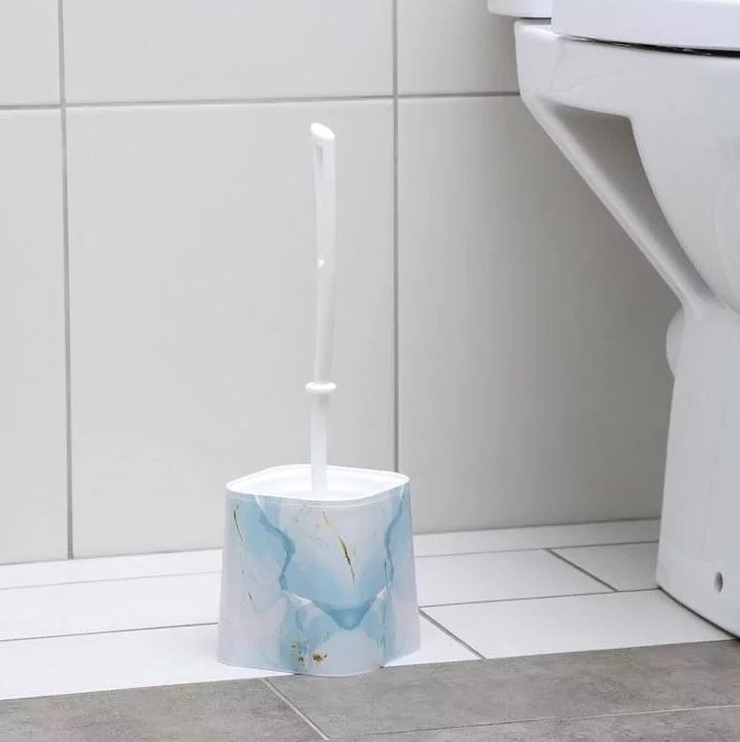 Компактный и прочный аксессуар с подставкой, не царапает керамику, легко моется и поддерживает чистоту в туалете.