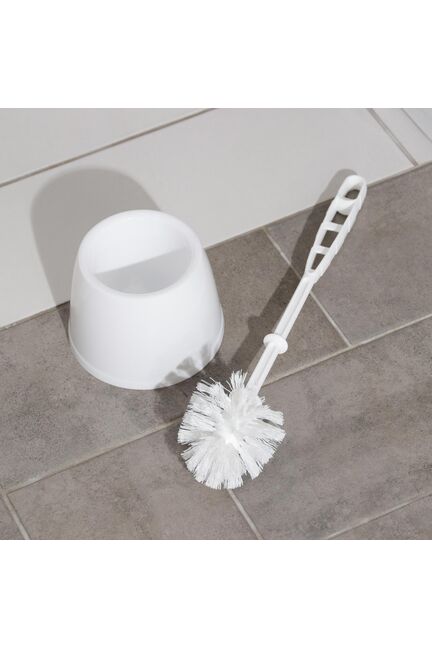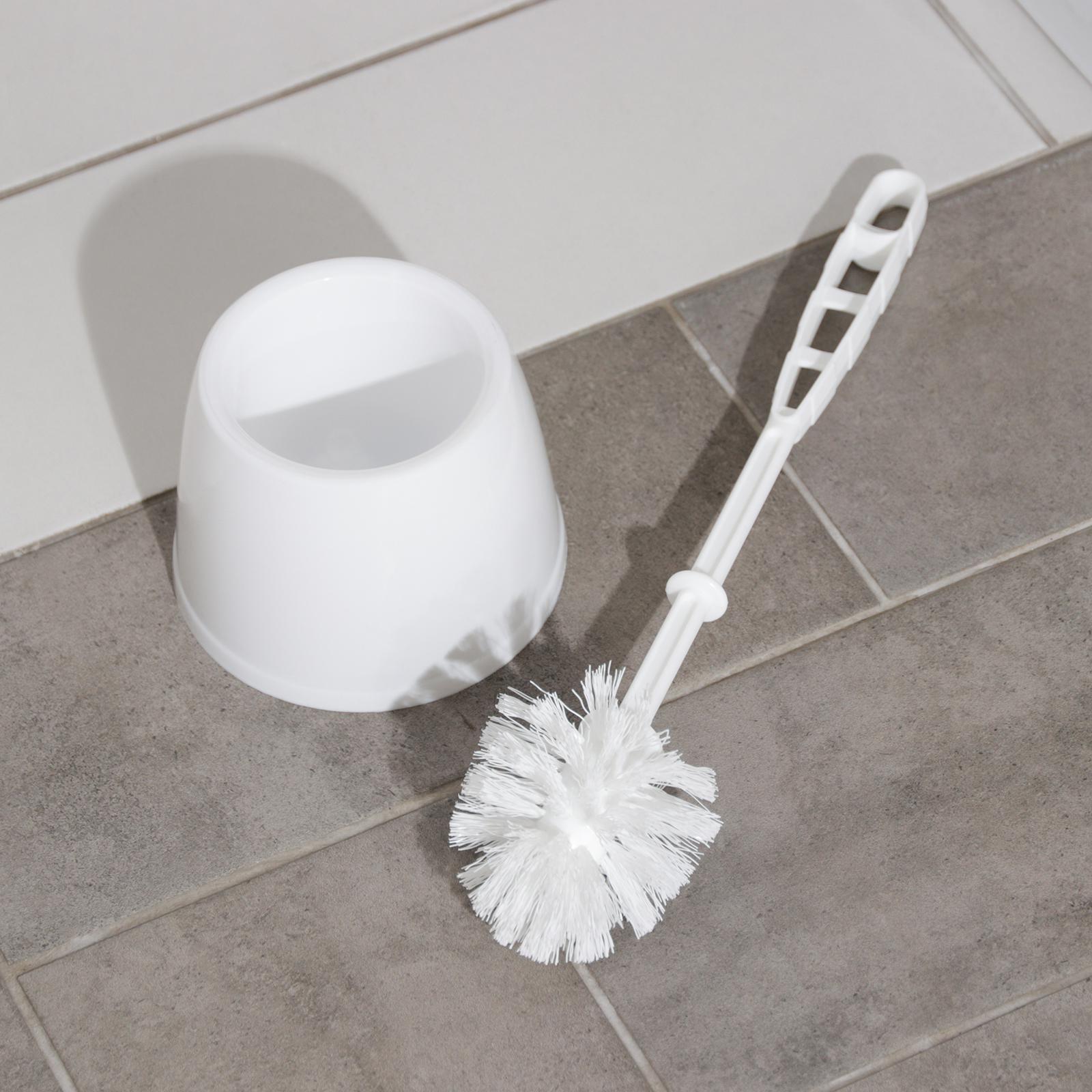 Универсальный белый ерш для унитаза с подставкой — компактный, легкий, влагоустойчивый, легко очищается и поддерживает чистоту санузла.