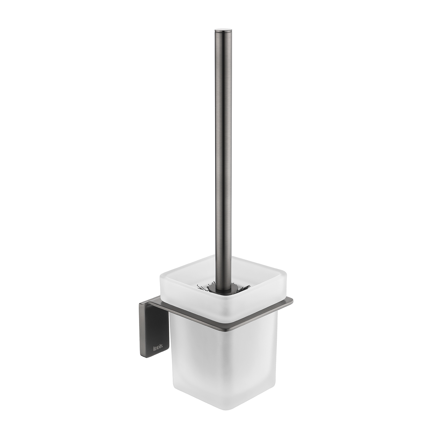 Ершик с матовой стеклянной чашей, покрытием графит, стойкий к износу, легко крепится на стену, комплект для монтажа в наборе.