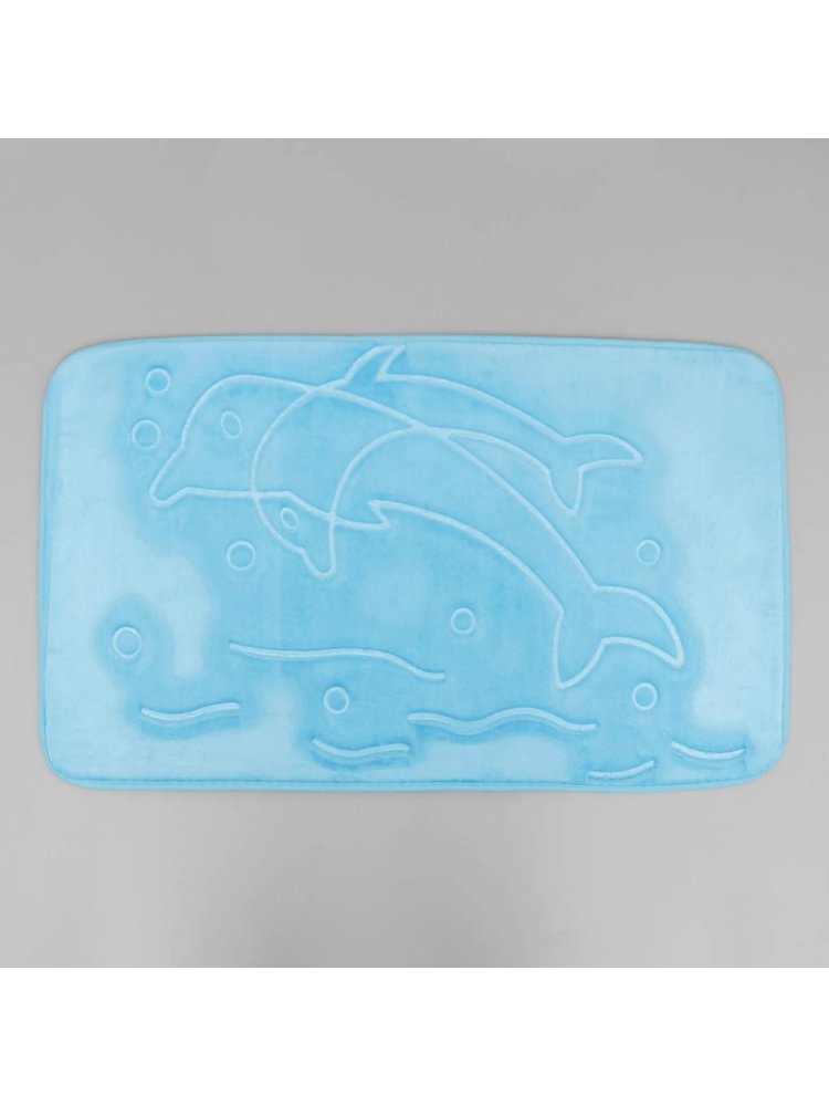 Коврик для ванной 50x80 см, голубой, с дизайном дельфина. Противоскользящая основа, мягкий материал, легко чистится. Идеален для влажных зон.