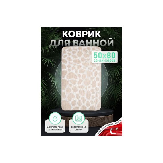 Материал: Полипропилен Цвет: Бежевый Производитель: Турция ДxШxВ: 800x500x40 мм Прочный влагостойкий коврик 50×80 см, нескользящая основа, легко чистится, современный бежевый дизайн, идеален для ванной и санузла.