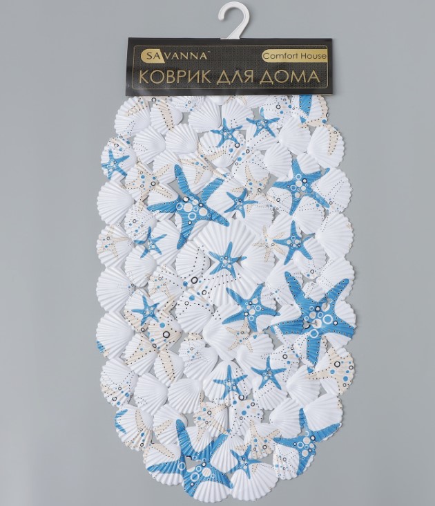 Противоскользящий коврик 38×68 см на присосках, рельеф с морскими звездами, для ванны и душа, износостойкий, легко моется, быстро сохнет.