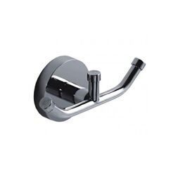 Хромированный двойной крючок для полотенец и одежды, устойчив к влаге и коррозии, легкий монтаж, компактный и практичный аксессуар для дома.