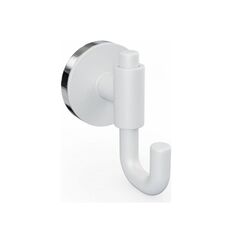 Белый матовый двойной крючок из прочного металла, устойчив к влаге, надёжен, отлично подходит для полотенец и одежды в ванной комнате.