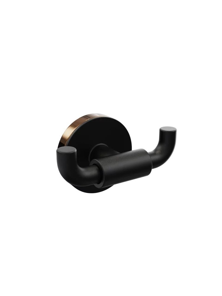 Современное стильное решение для обустройства ванной комнаты, кухни или гардеробной — двойной крючок черного цвета с декором в виде кольца, который обеспечит удобство хранения полотенец, одежды, аксессуаров и прочих вещей.