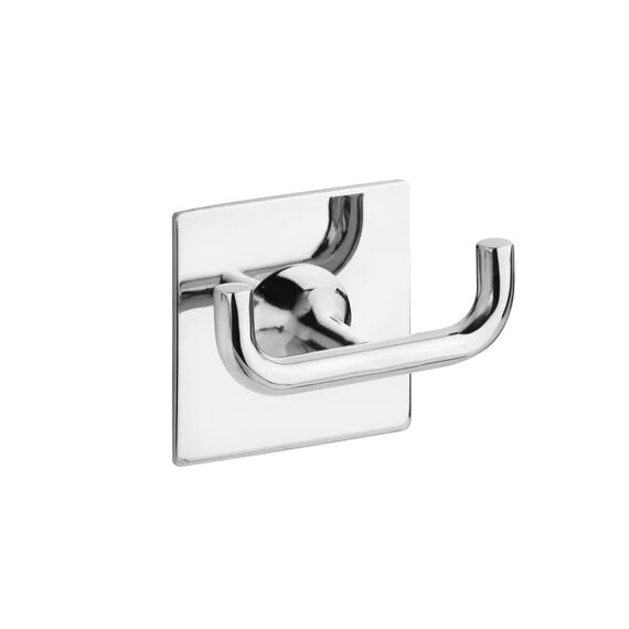 Тип крепления: Липкая лента Максимальная нагрузка: 8 кг Материал: Сплав металла с хромоникелиевым покрытием Цвет: Хром ДxШxВ: 70x40x55 мм Двойной крючок из хромированного металла, устойчив к влаге, подходит для ванной и прихожей, простой монтаж, современный дизайн и долговечность.