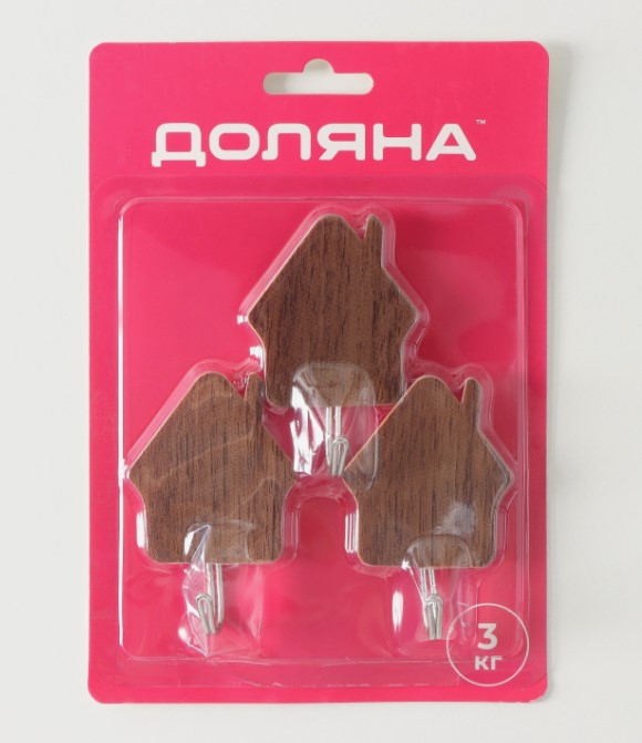 Набор из 3 крючков на липучке выдерживает до 1 кг, легко крепится и снимается, декоративный вид под дерево украсит любой интерьер.