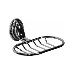 Овальная металлическая мыльница с хромированием, устойчива к коррозии, сетка обеспечивает быстрое высыхание мыла и предотвращает скольжение.