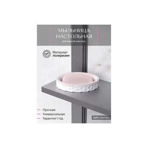 Мыльница настольная, полирезин, белая/розовая "Fora Soft" SFT036