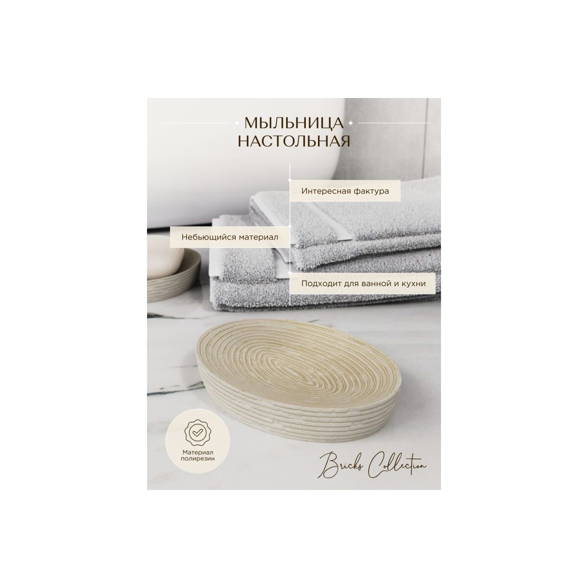 Мыльница настольная, полирезин, бежевая "Fora Bricks" BRK036BE в Амурск