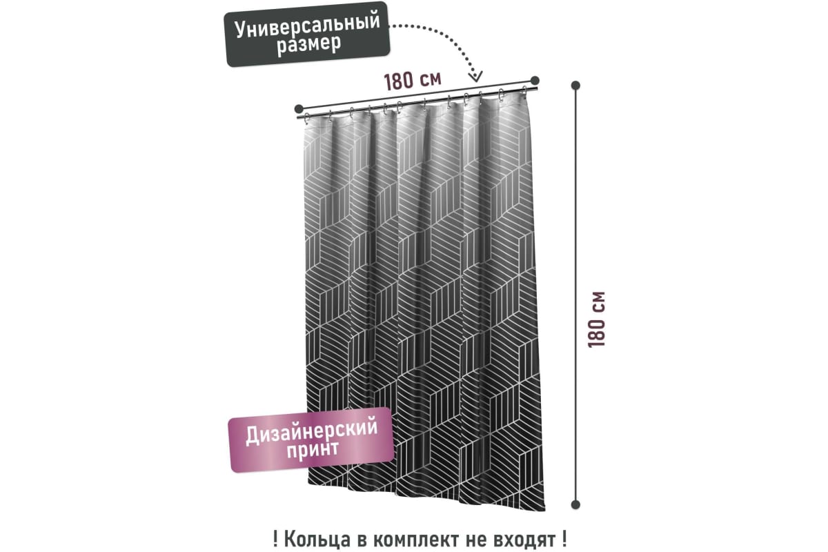 Штора д/ванной "Delicate Black" 180*180см, полиэстер, серая FOR-PH-DLB