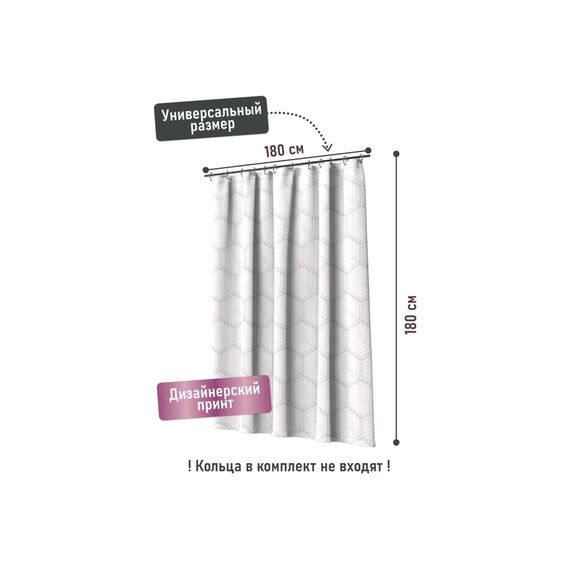 Надежная штора из влагостойкого полиэстера 180×180 см защищает ванную от брызг, устойчива к плесени, подходит для любого интерьера.