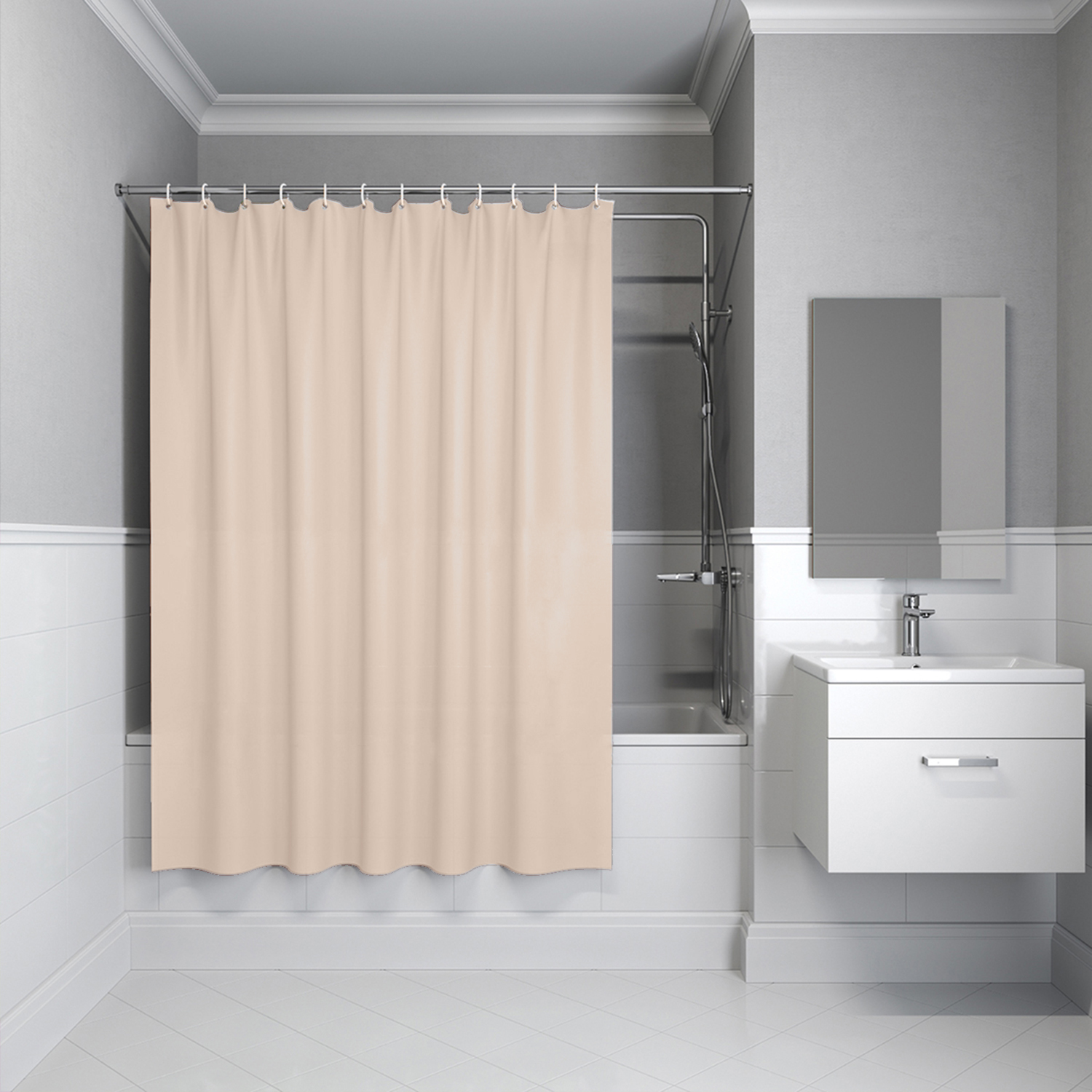 Непромокаемая штора 200×180 см из прочного полиэтилена, бежевого цвета, легко моется, предотвращает разбрызгивание воды в ванной.