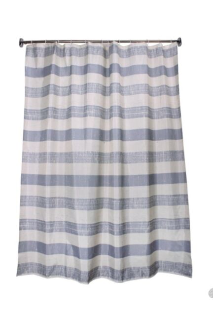 Освежите интерьер ванной благодаря стильному и практичному элементу - водонепроницаемой шторе с тканевой текстурой и современным дизайном в полоску. Она эффективно защищает пол и стены от влаги и брызг, создавая комфорт при принятии душа или ванны.