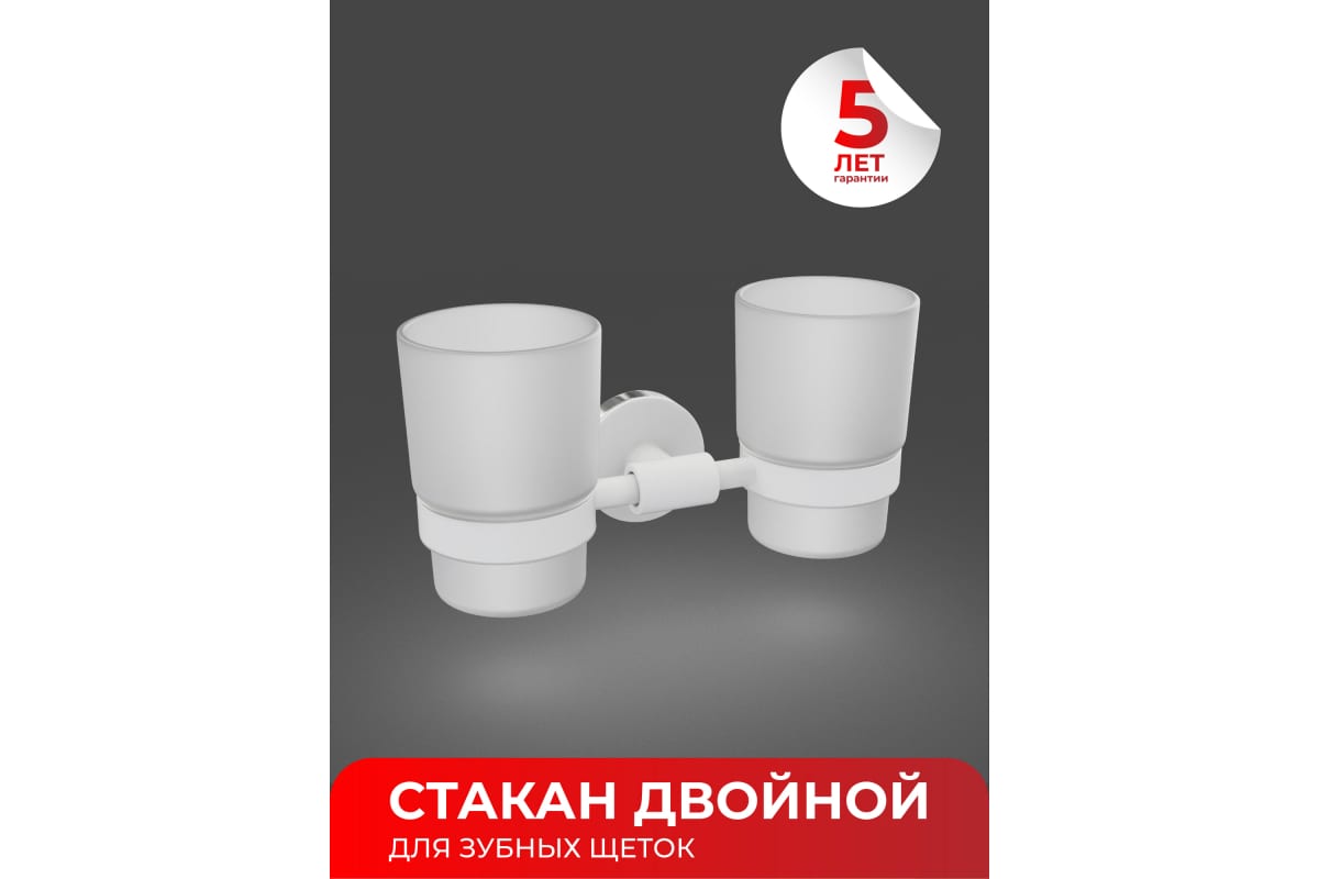 Тип крепления: Со сверлением Материал: Нержавеющая сталь Материал емкости: Стекло матовое Цвет: Белый ДxШxВ: 190x68x96 мм Эксклюзивный элемент коллекции "LORD" FORA – декоративные кольца, которые можно менять в зависимости от дизайна помещения. Хромовое или деревянное кольцо идеально сочетаются с металлическими элементами сантехники. Двойной настенный стакан с белым стеклом и декором-­кольцами, прочный и стильный, отлично подойдёт для компактного хранения щёток в ванной.