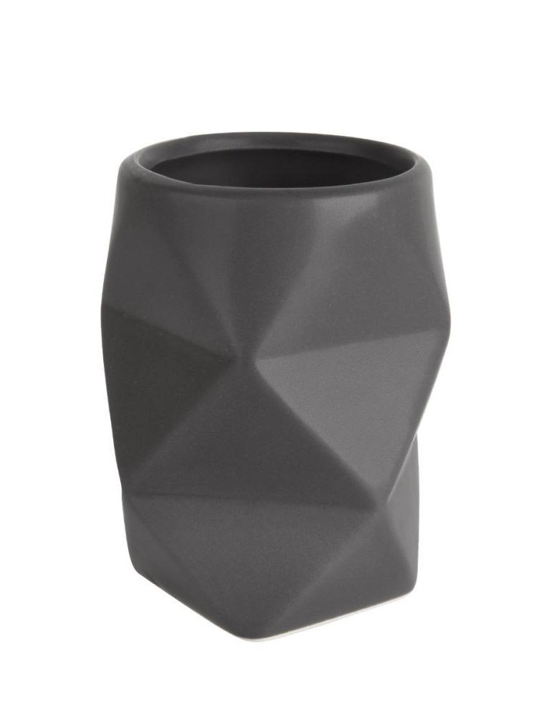 Размер: 8*8*10,30 см Керамический стакан, оттенок "графит" для зубных щеток: прочный, защищён от влаги, легко моется и гармонирует с любым интерьером ванной комнаты.