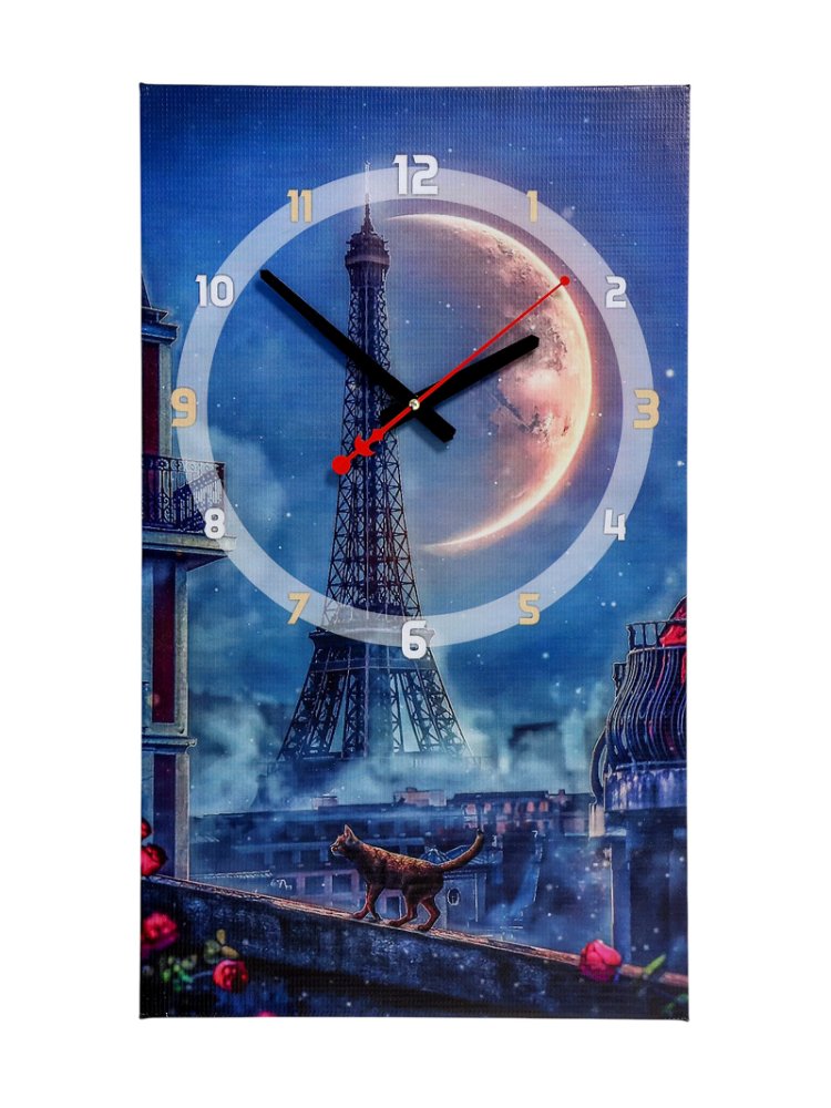 Элегантные настенные часы-картина станут стильным акцентом в вашем интерьере и подчеркнут индивидуальность любого пространства – квартиры, офиса, коммерческого помещения или зоны ожидания. Изображение Парижа придаёт уют и вдохновение, совмещая функциональность часов с декоративным эффектом современной картины.