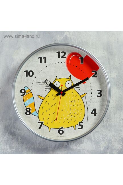 Часы настенные детские (d=30) "Кот с шариком" 2584181