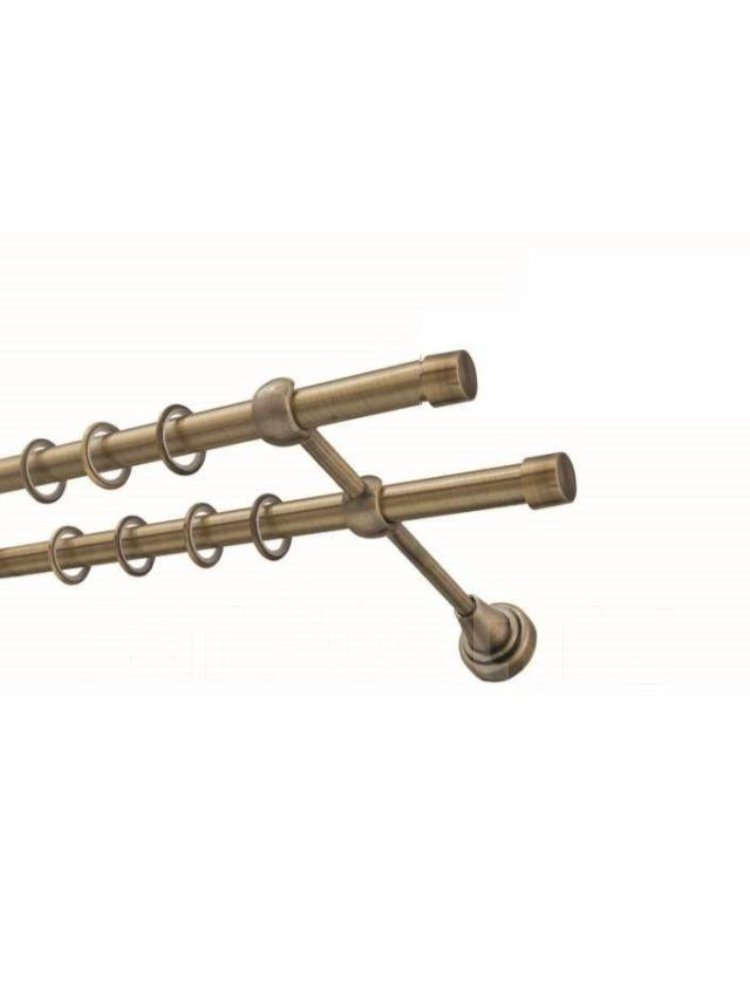 Карниз кованый двухрядный с гладкой поверхностью диаметром 16 мм и длиной 2,4 м в цвете антик золото - это стильное и надежное решение для оформления оконных проемов. Изготовлен из прочного металла с декоративным покрытием, которое придает изделию элегантный винтажный вид и защищает от коррозии. Подходит для крепления штор и гардин различного веса благодаря высокой прочности конструкции. В комплекте поставляются все необходимые элементы для установки, включая кронштейны и крепежи. Дизайн в стиле антик золото гармонично вписывается в классические и ретро интерьеры, подчеркивая изысканность пространства.