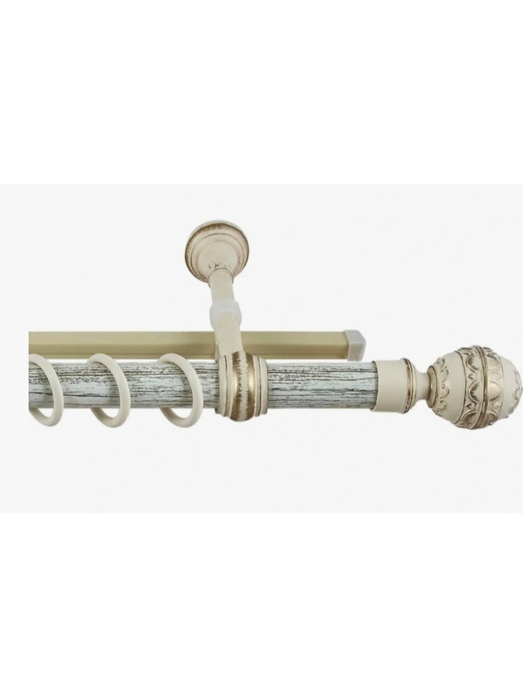 Элегантное решение для оформления оконных пространств в классических и современных интерьерах: двухрядный круглый карниз с декоративной отделкой "Патина белый (золото)" идеально подходит для крепления легких и средних штор и тюля, обеспечивая прочность, удобство и изысканный внешний вид.