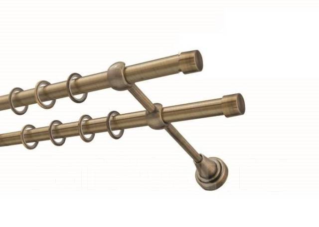 Карниз кованный 16мм гладкий 2-х ряд. 2,4м антик золото