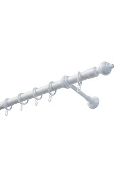 Особенностью карниза «Ретро» является фигурный кронштейн, который обеспечивает более удобное и надежное крепление трубы и шины, а также упрощает эксплуатацию - снять шторы с карниза «Ретро» очень легко. Комплектующие: стальная ламинированная труба d-28 мм, стальная шина, пластиковая фурнитура (кронштейны, кольца, крючки, наконечники), дюбели, саморезы. Карниз имеет индивидуальную упаковку. Двухрядный круглый карниз 2 м белый, металл, для тюля и штор, стиль ретро, прочный, универсален для стенового и потолочного крепления.