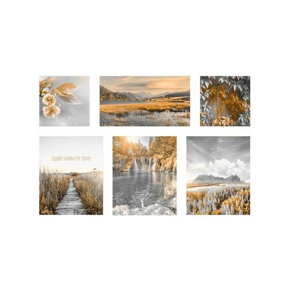 Размер (Д*Ш*В): 114*70*3 см Мультимодули представляют собой шесть изображений одной стилистики. Главное их отличии, что все сегменты индивидуальны, ими можно украсить весь дом, квартиру, ресторан и т.д. Или просто повесить на одну стену в единой стилистике. Общий размер 114х70 см Кол-во секций - семь: 30х30, 30х30, 38х47, 38х47, 38х47см. 54х30 см. Состав: Нетканый материал, подрамник из МДФ. Упаковка: Защитные уголки и термоусадочная пленка Модульная картина 114×77 см с ярким природным мотивом, устойчивая печать, легкий монтаж, подойдет для декора любой комнаты или офиса.
