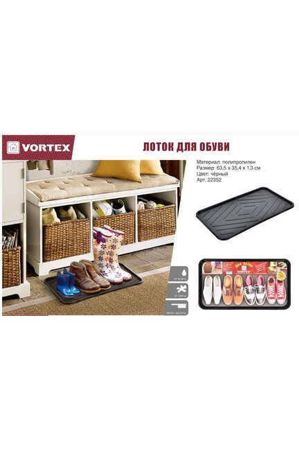 Коврик-лоток для обуви полипропиленовый 63,5*35,4*1,3см, чёрный в Амурск