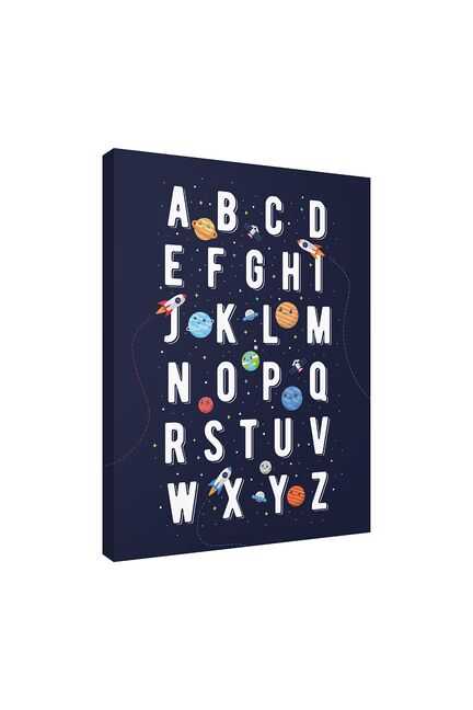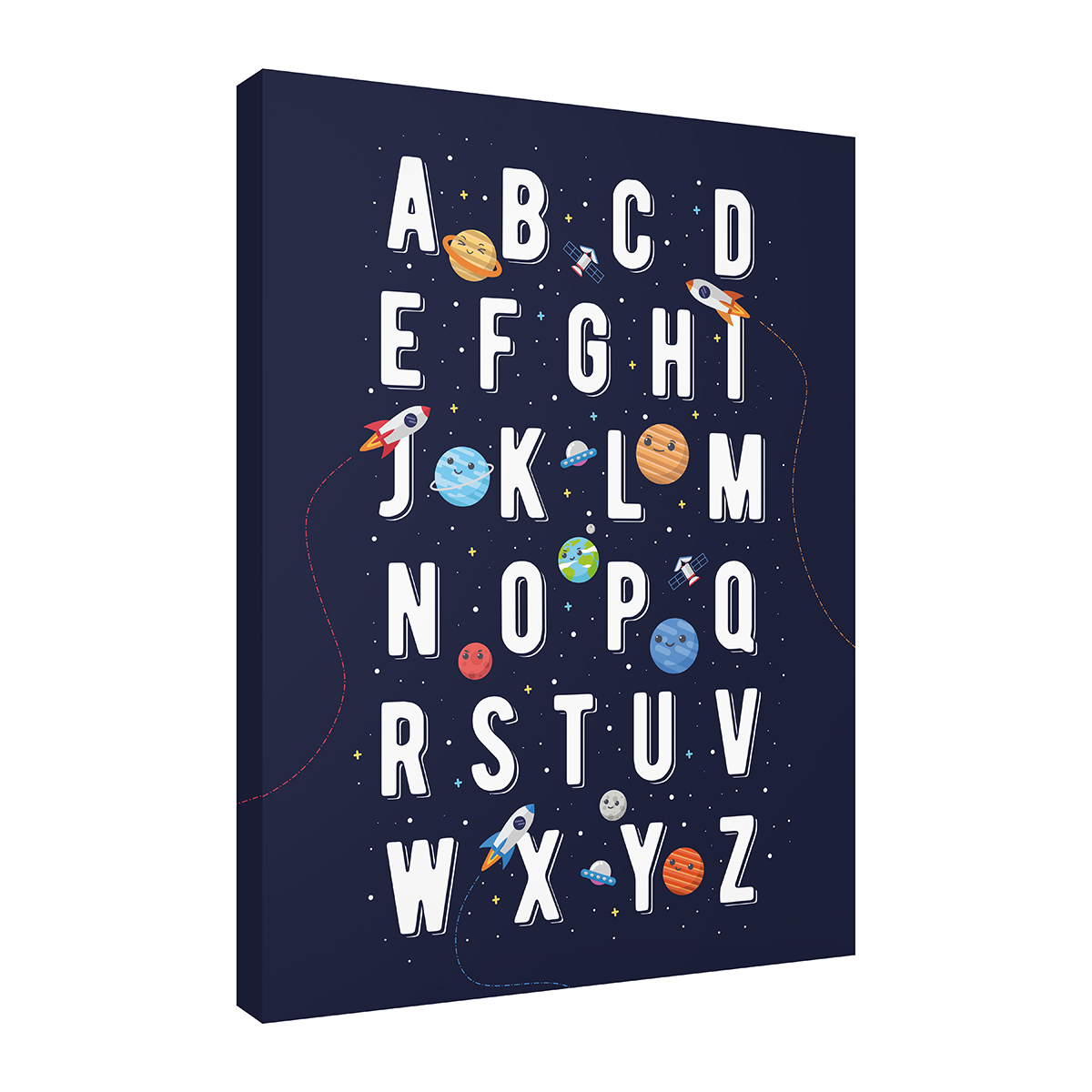 Яркий постер 30×40 см с космическим алфавитом на английском для развития детей и стильного декора комнаты, безопасные материалы и насыщенные цвета.
