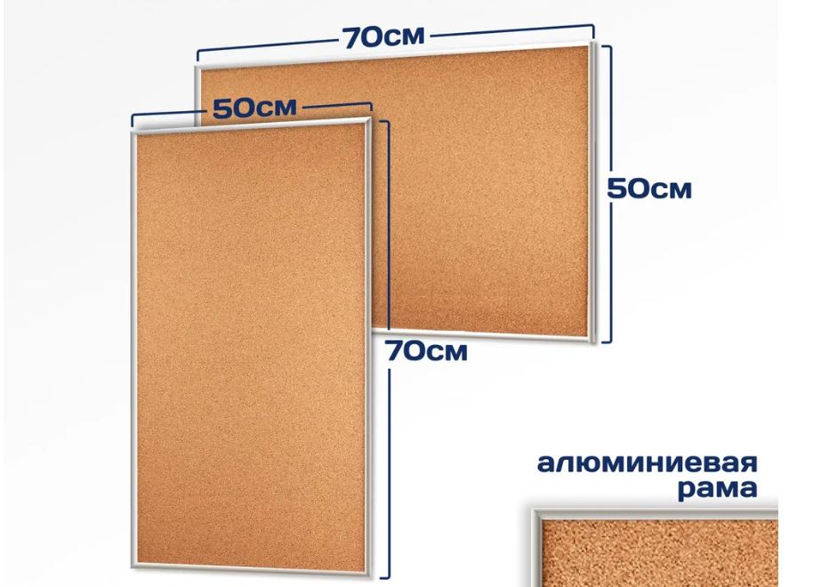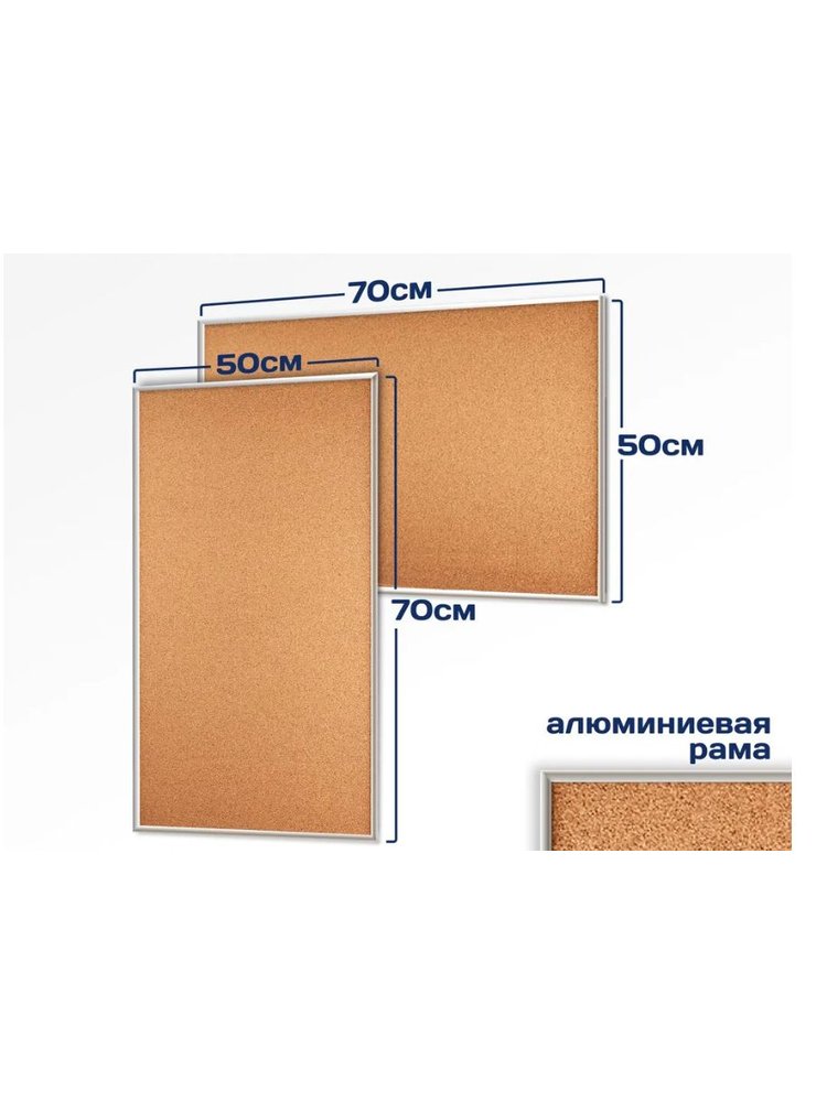 Пробковая доска 50×70 см из натурального материала для заметок и органайзера. Легко крепится, удобна для организации задач и напоминаний.