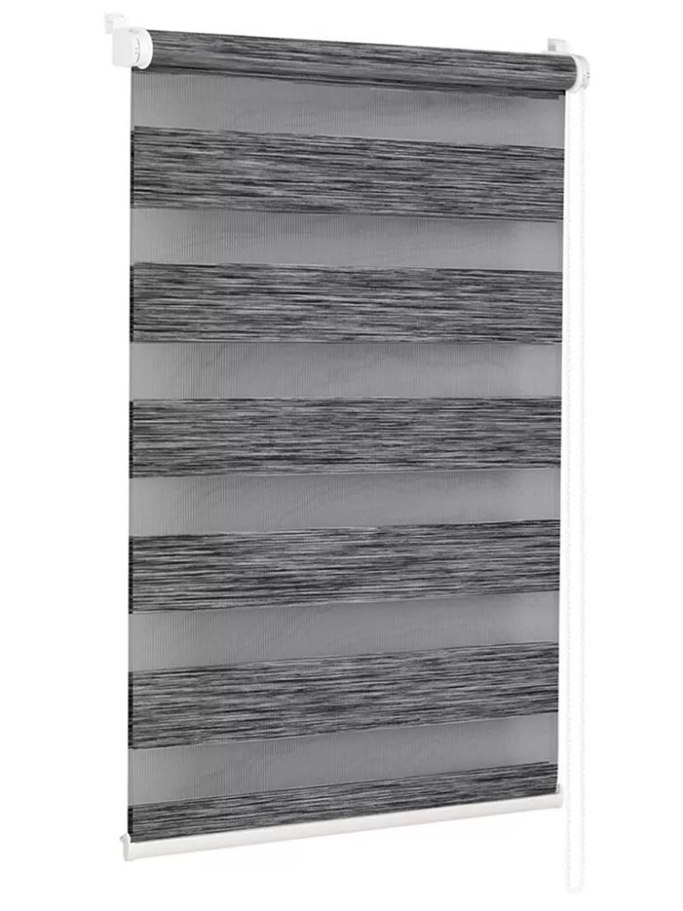 Современное решение для стильного и функционального оформления окон в доме, офисе, кафе и коммерческих помещениях. Рулонная штора «день-ночь» в цвете "Графит" эффективно регулирует степень освещённости, создаёт комфортную атмосферу и защищает от посторонних взглядов.