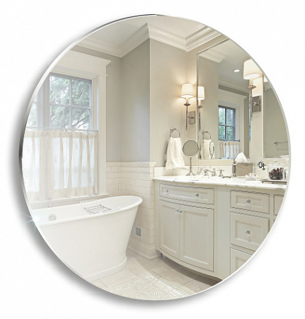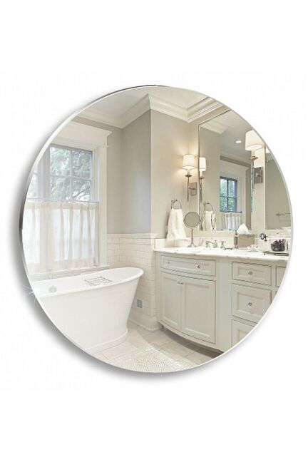 Круглая форма, диаметр 650 мм, влагостойкое стекло, безопасные края, подходит для ванной, прихожей и других жилых помещений.