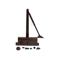 Тип тяги доводчика: с рычажной тягой. Максимальная ширина дверного полотна 1100 мм. Максимальный вес двери 85 кг. Диапазон рабочих температур от -40до +60 градусов цельсия. Доводчик для дверей до 1100 мм и 85 кг, коричневый, тихое и плавное закрывание, регулируемые параметры, подходит для разных типов помещений.