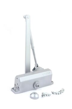 Тип тяги доводчика: с рычажной тягой. Максимальная ширина дверного полотна 950 мм. Максимальный вес двери 65 кг. Диапазон рабочих температур от -40до +60 градусов цельсия. Подходит для дверей до 950 мм и 65 кг, универсальный монтаж и регулировка, плавное закрытие, износостойкий серебряный корпус.