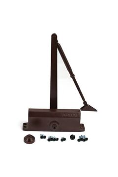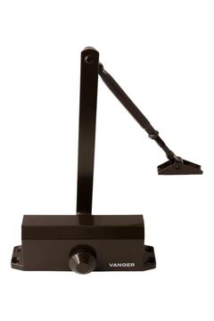 Тип тяги доводчика: с рычажной тягой. Максимальная ширина дверного полотна 1100 мм. Максимальный вес двери 85 кг. Диапазон рабочих температур от -40до +60 градусов цельсия. Доводчик для дверей до 1100 мм и 85 кг, коричневый, тихое и плавное закрывание, регулируемые параметры, подходит для разных типов помещений.