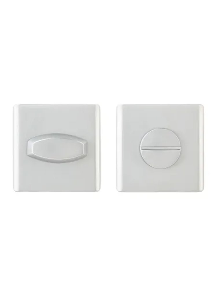 Материал алюминий, длина квадрата 75 мм, размер сечения 6 мм, покрытие полимерная краска. Сантехнический фиксатор с хромированным покрытием для межкомнатных дверей, устойчив к износу, подходит для ванной и туалета, быстрый монтаж.