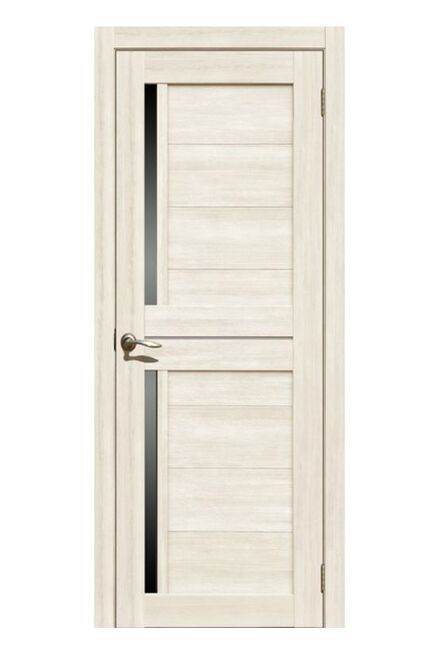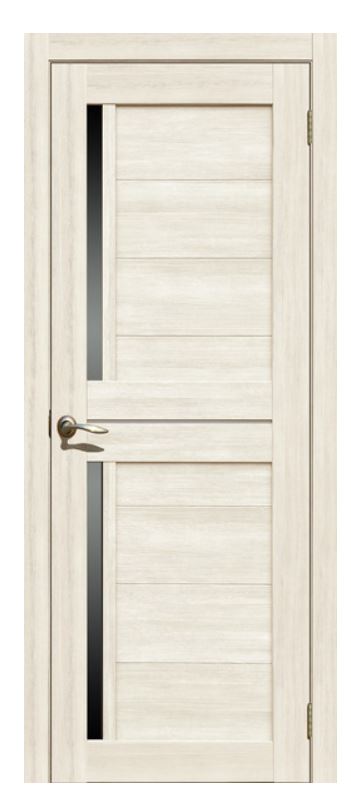 коллекция La Stella.царговая конструкция отличается высокой прочностью и многовариантностью отделки. МДФ наполнение двери обладает достаточно высокой жесткостью и хорошей тепло- и звукоизоляцией. Покрытие двери - Экошпон - защищает ее от высокой влажности и любых механических повреждений Светлое дверное полотно с чёрным стеклом, размер 700 мм, подходит для дома и офиса, прочное, эстетичное и универсальное для разных интерьеров.
