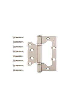 Универсальные накладные петли Avers из стали, не требующие врезки в дверное полотно, предназначены для деревянных межкомнатных дверей. Толщина карты 2,5 мм, высота 100 мм, ширина 75 мм. Легкая установка без врезки, высокопрочный матовый никель, плавный ход и надежность — идеальный выбор для современных межкомнатных дверей.