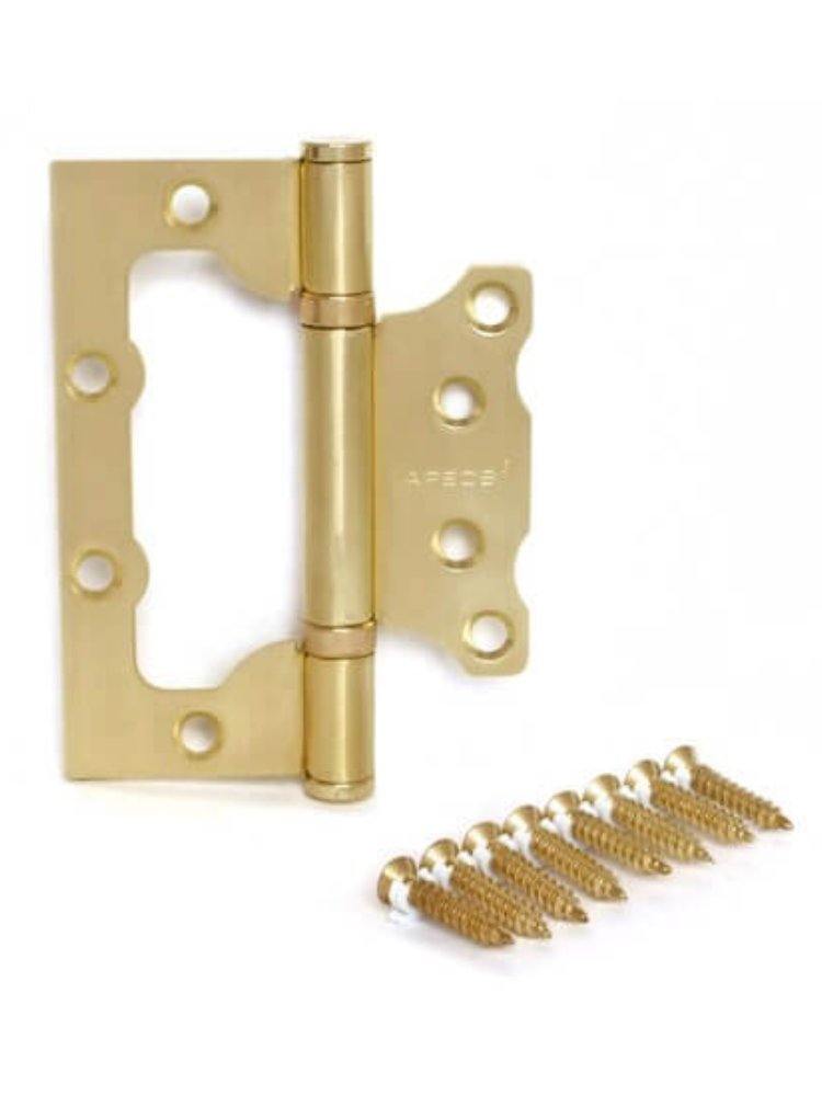 Стильная и прочная дверная петля идеально подходит для межкомнатных и входных деревянных дверей в доме или офисе. Матовое золотое покрытие придаёт интерьеру элегантность, а универсальная конструкция облегчает монтаж без врезки, что экономит время и силы при установке.