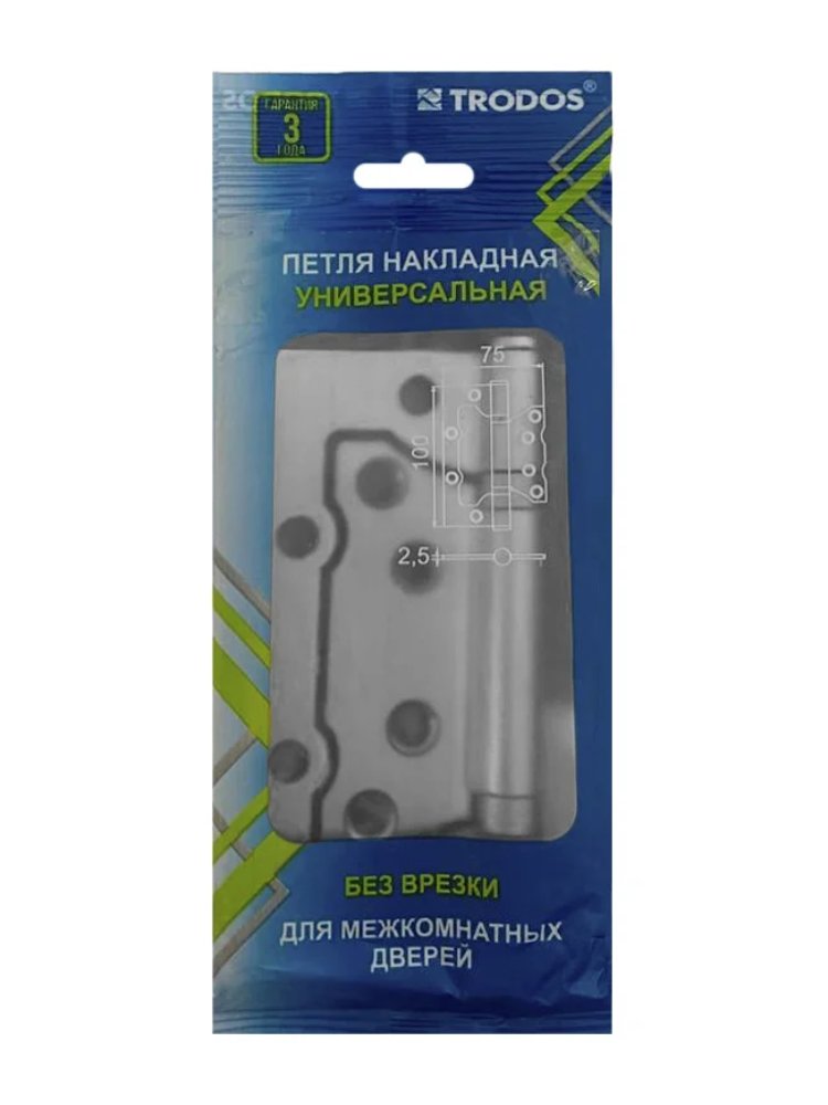 Идеальный выбор для установки межкомнатных и входных дверей в квартирах, офисах и частных домах! Петля 100*75*2,5 мм с хромовым покрытием обеспечивает долговечность и надежную фиксацию дверного полотна без необходимости врезки, что значительно ускоряет монтаж и снижает риск повреждения дверей.