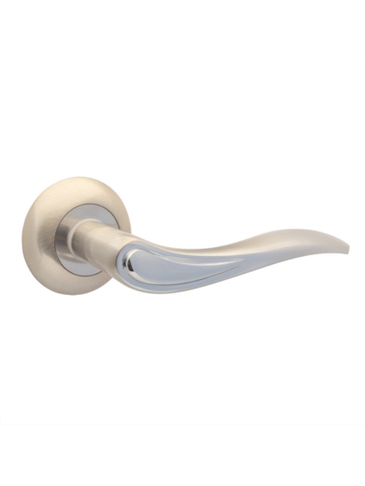 Эргономичная ручка с износостойким покрытием, стильный дизайн матовый никель/хром, подходит для межкомнатных и входных дверей.