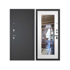 Толщина полотна/глубина короба: 100/115 Внутренняя отделка: МДФ-панель 10 мм, зеркало Наполнение: Базальтовая плита Уплотнение: 3 контура Замок основной/дополнительный: Guardian цилиндровый (ключ-вертушка)/сувальдный (ключ-ключ) Стильная входная дверь 3К с зеркалом, усиленной защитой, шумо- и теплоизоляцией; идеальна для квартир и современных домов.