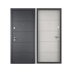 Тип внешней отделки: порошково-полимерное покрытие, Тип внутренней отделки: панель MDF с ПВХ покрытием. Верхний замок: BORDER ЗВ 8-8К.5, сувальдного типа 4-го класса взломостойкости. Нижний замок: Blockido C1, с цилиндровым механизмом с вертушком и ключами с перфорацией, 4-го класса взломостойкости. Магнитный уплотнитель. Накладной порог из нержавеющей стали. Современная металлическая дверь с повышенной безопасностью, утеплением и стильной отделкой. Решение для дома и офиса стандартного проема.