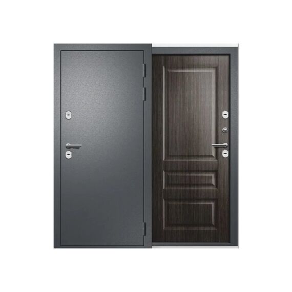 Три контура уплотнения Уплотнитель специализированный дверной Глубина короба 145мм Толщина дверного полотна 110 мм Наполнитель: пенополистерол Внешнее атмосфероустойчивое покрытие Терморазрыв пластиковый на полотне и коробе Внутренняя панель МДФ 10мм,с фрезерованным рисунком Два сувальдных замка Border Ночная задвижка Эксцентрик Теплая дверь с терморазрывом, эко-шпон "Дуб грей", утепление 100 мм, два замка, защита от холода и шума, идеальна для частного дома.